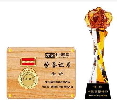 恭喜徐靜獲萬師講師網(wǎng)2023年度中國百強講師 暨第五屆中國培訓行業(yè)標桿人物