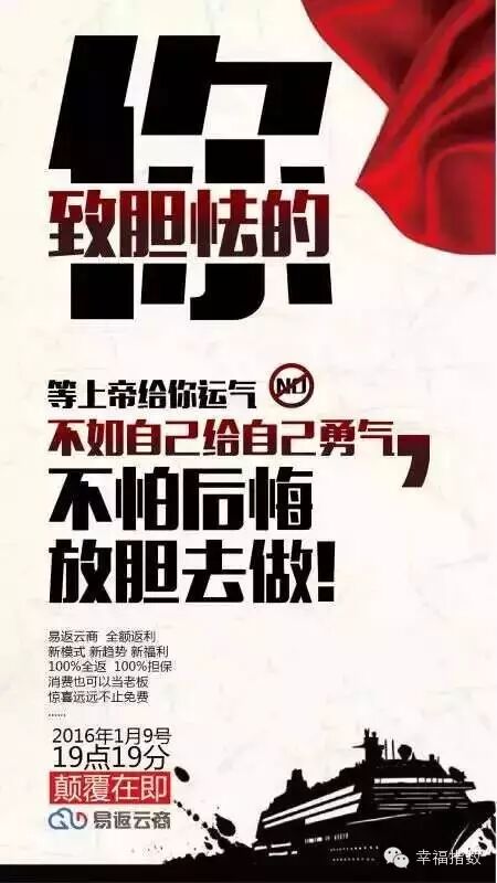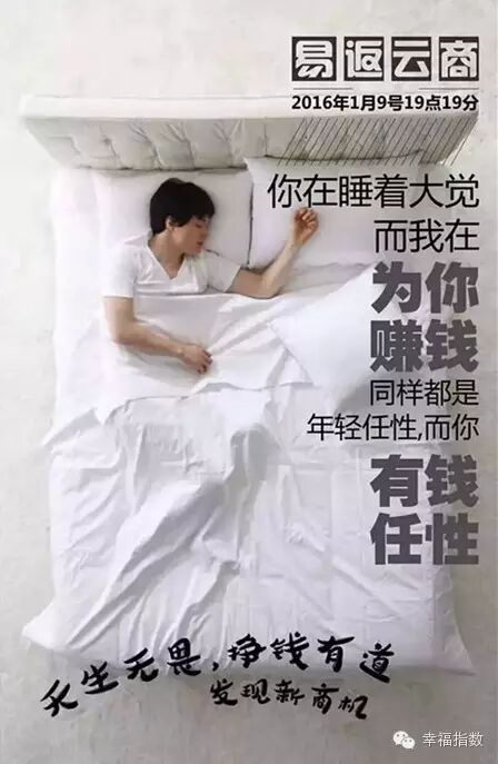 你理解當(dāng)年的微信使用不收費,就明白了今天的“易返云商”消費全返,它是由政府大力支持,投資人用幾個億進來風(fēng)頭、砸市場,要的就是這個大數(shù)據(jù)、這個流量,最終在資本市場拿到豐厚的收益。